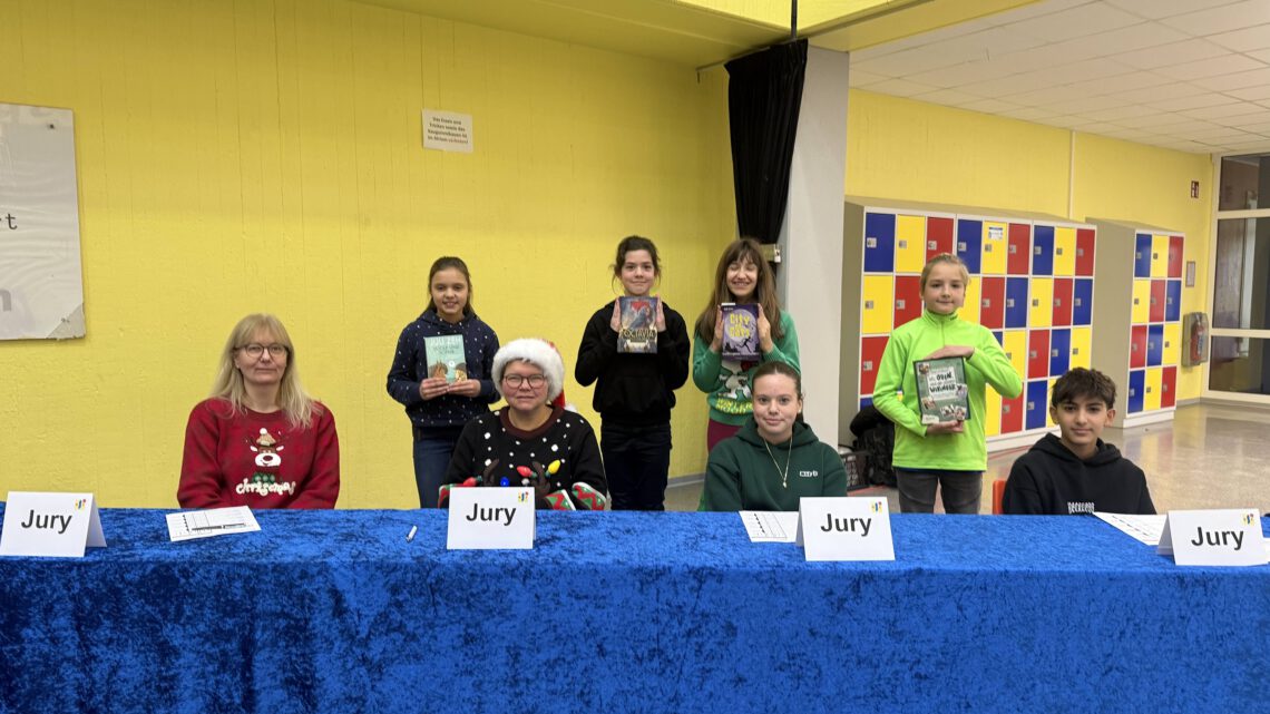 Aufmerksam begleitet wurden die Vorträge von einer vierköpfigen Jury, bestehend aus Julia (Schulsprecherin), Mahir (Vorjahressieger), Frau Mühlhause (Sekretariat) und Frau Löffler (stellv. Schulleiterin). Die Jury hatte die anspruchsvolle Aufgabe, die Vorleseleistungen zu bewerten und am Ende die Schulsiegerin bzw. den Schulsieger zu ermitteln.