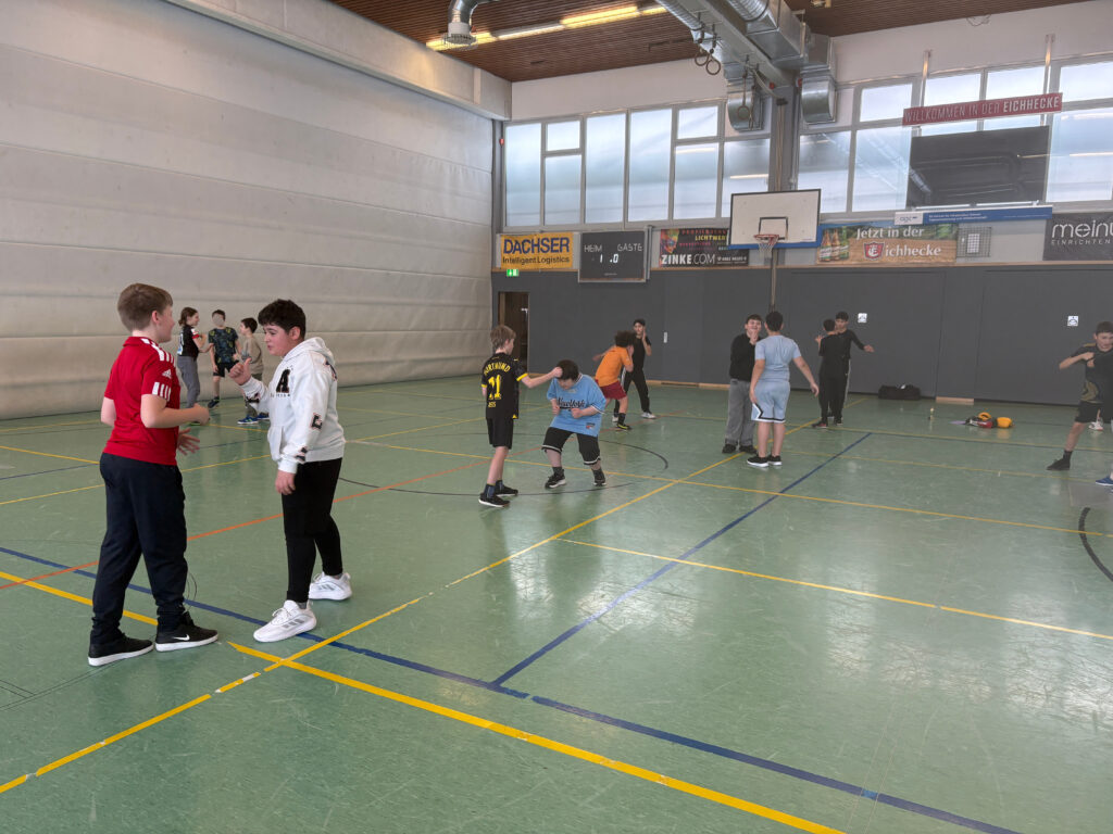 Auch für den Jahrgang 6 standen am Mittwoch Bewegung und Teamgeist im Mittelpunkt: In der Sporthalle fand ein Abtreffballturnier statt, bei dem alle Klassen des Jahrgangs gegeneinander antraten. Mit viel Einsatz, Fairness und Spaß feuerten sich die Teams gegenseitig an. Der Donnerstag verlief deutlich entspannter. Beim gemeinsamen Frühstück konnten alle gemütlich in den Tag starten. Anschließend wurden Brett-und Gesellschaftsspiele gespielt oder die Zeit draußen im Schnee genossen. So boten diese Vorhabentage eine gelungene Mischung aus Aktivität, Gemeinschaft und Entspannung. Ein besonderer Dank gilt den Sportlehrkräften Frau Rastig und Herrn Simon, die das Abtreffballturnier organisiert und damit zu einem tollen Erlebnis für alle beigetragen haben.